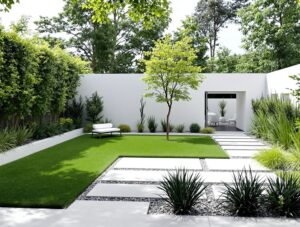 Rzeźby ogrodowe – od minimalistycznych po bardziej wyszukane – mogą stać się centralnym punktem aranżacji, dodając jej szyku i wyrafinowania. Drewniane dodatki w postaci kratownic czy małych pergoli pełnią natomiast funkcję dekoracyjną oraz stanowią podporę dla pnączy.
