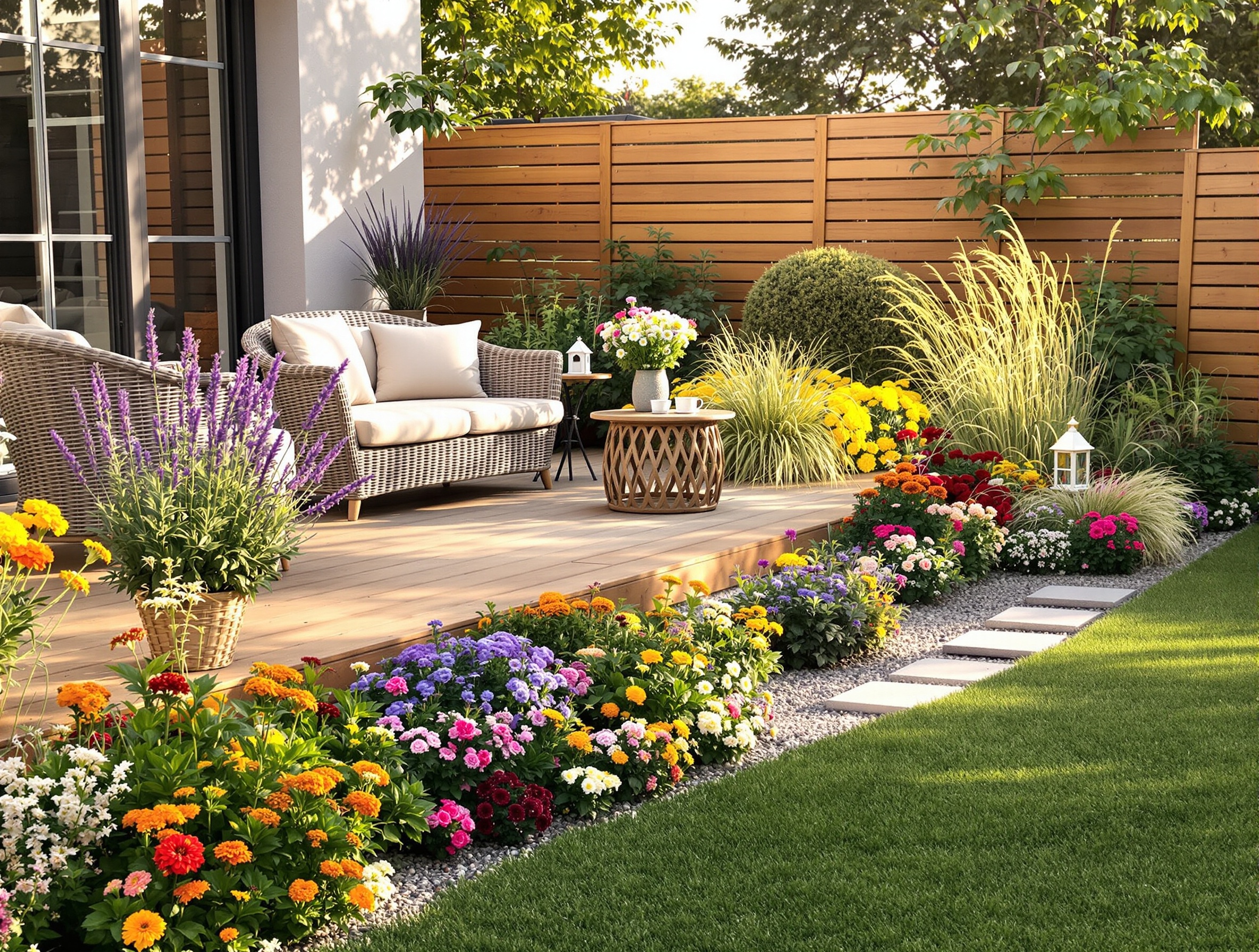 Proste układy rabaty przy tarasie – mało pracy, maksymalny efekt
